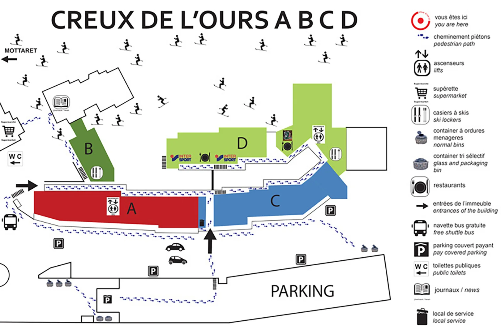 La résidence Creux de l'ours se situe en plein cœur du Hameau, au Laitelet. Elle est située aux pieds des pistes et des commerces.