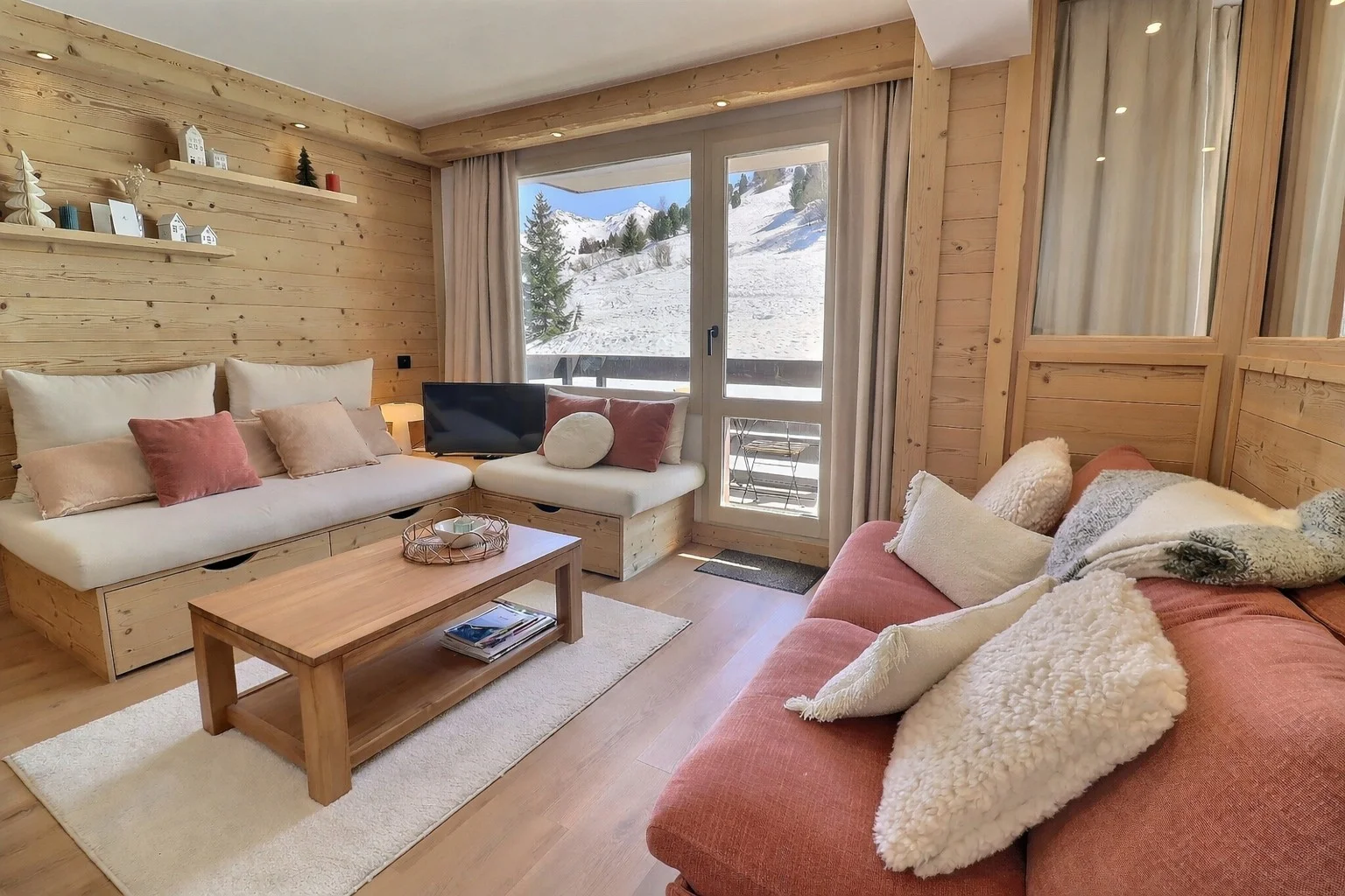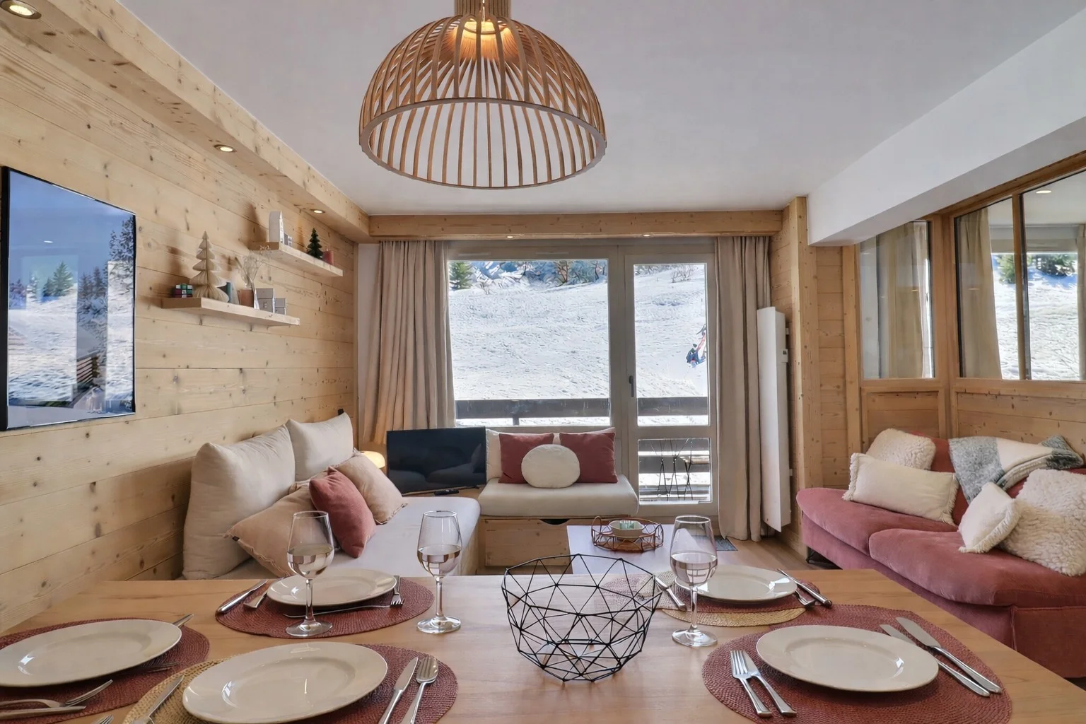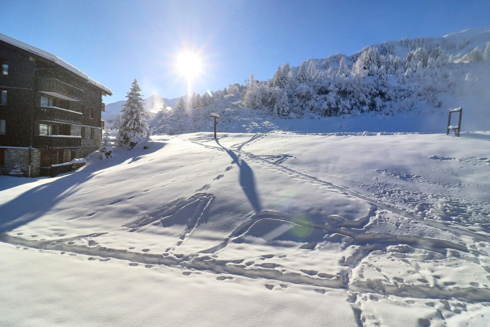 Pour rejoindre les pistes depuis l'appartement, rendez-vous aux casiers à ski de la résidence, puis traversez une place pour accéder à la piste verte "Perdrix" qui mène au départ principal des remontées mécaniques.
